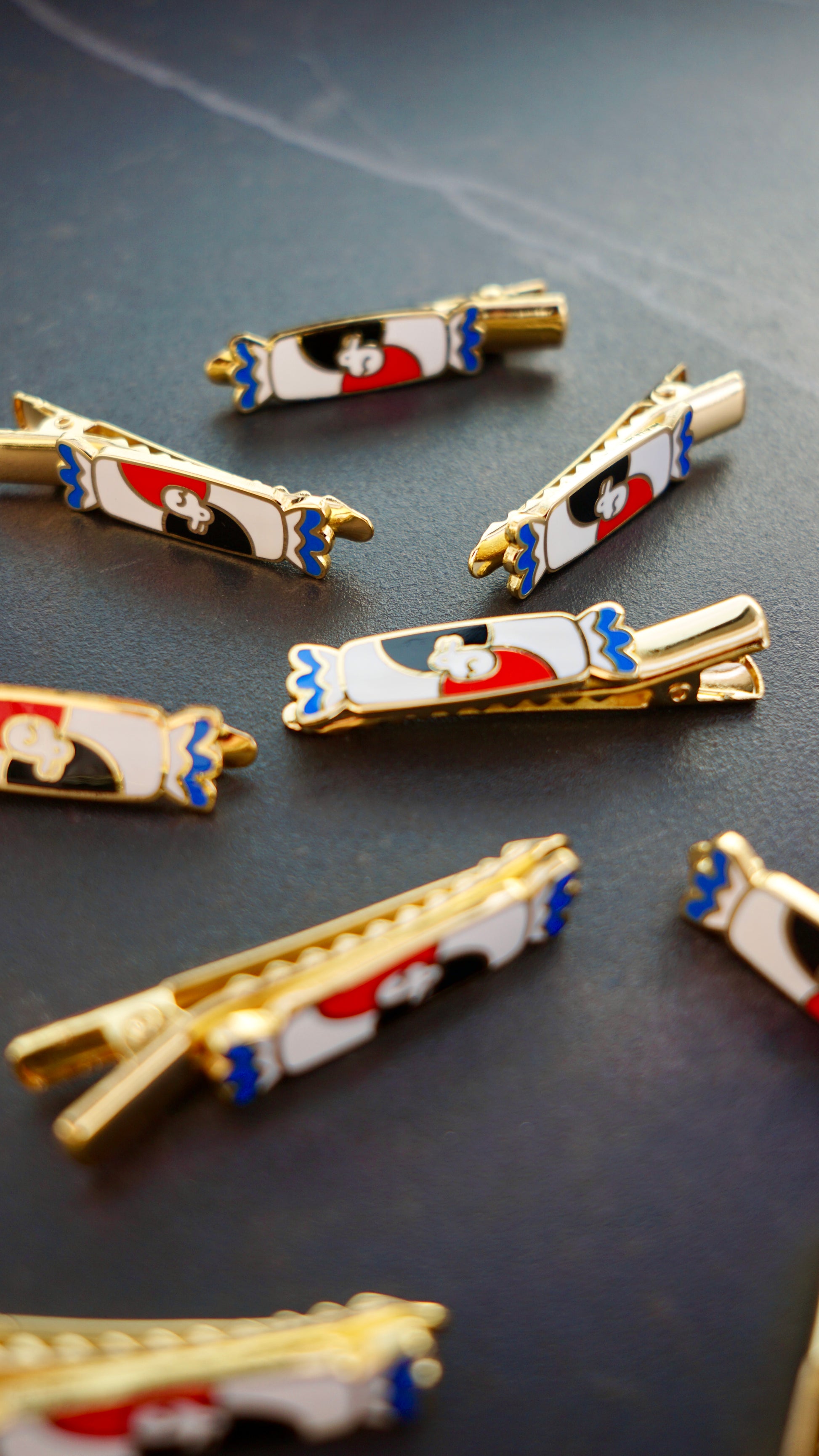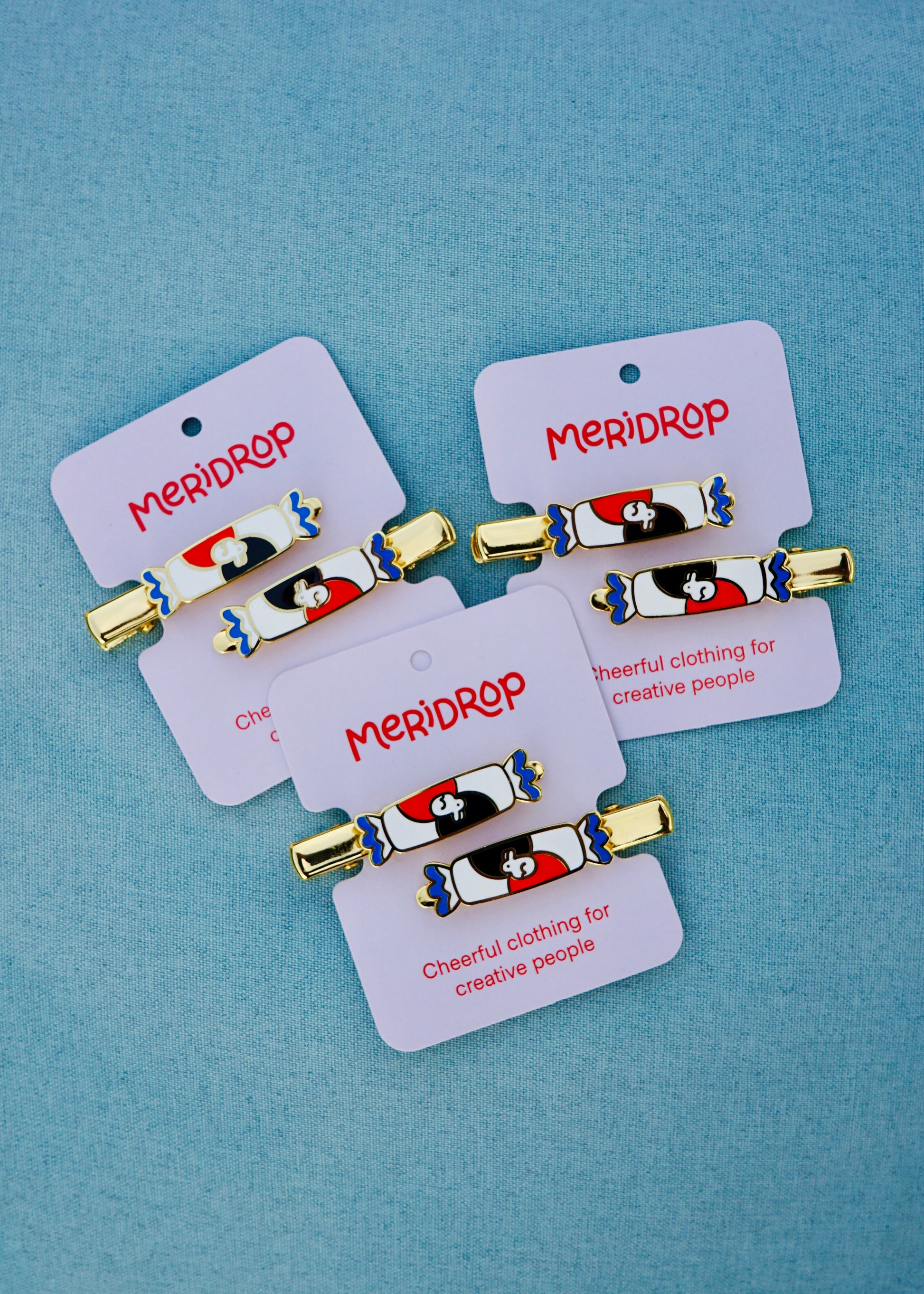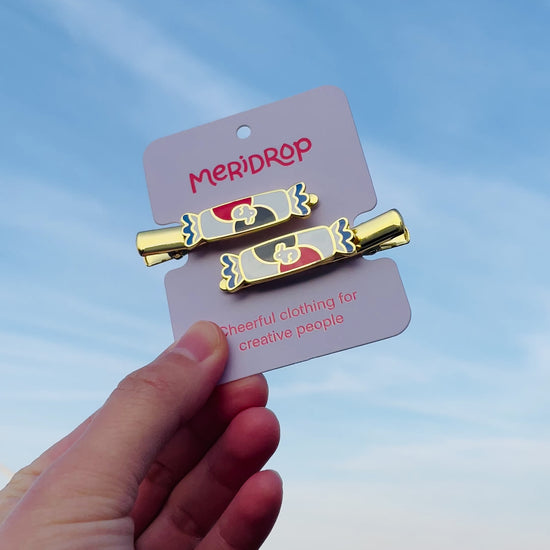 This hair clip set features a nostalgic rabbit candy and is the perfect cute and polished accessory for your collection!